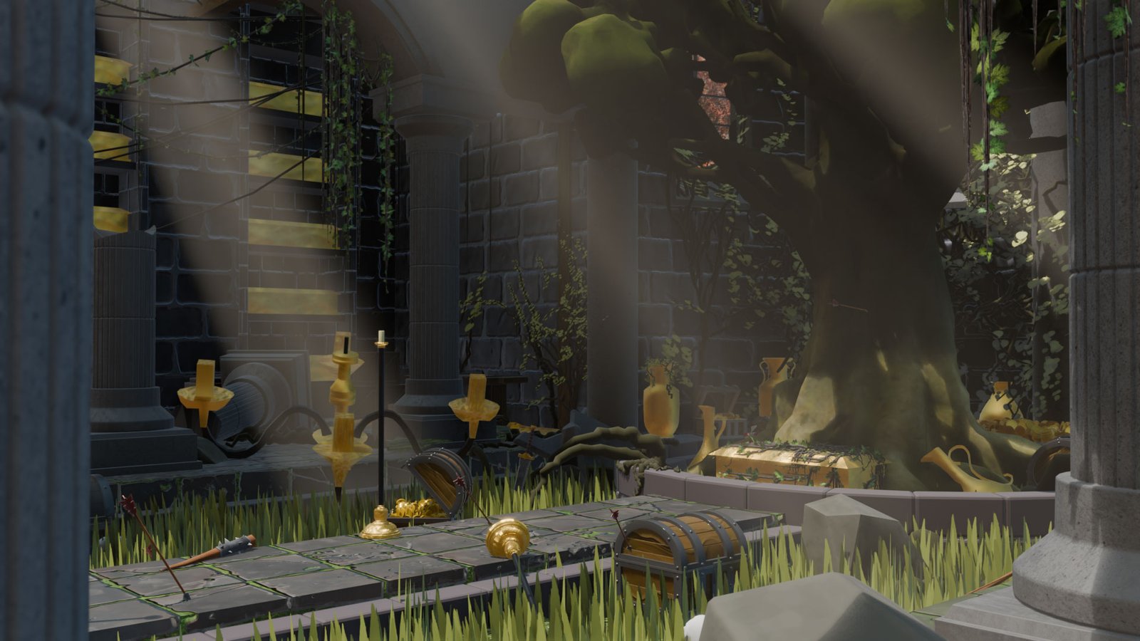 Blooming Stone is a 3D work-in-progress environment created for an unannounced collaborative animated short film. The project depicts a ruined medieval structure known as The Queen’s Grave, a place marked by the remains of ancient battles fought to protect a royal treasure. The environment blends decay and history, hinting at a forgotten past shaped by conflict.