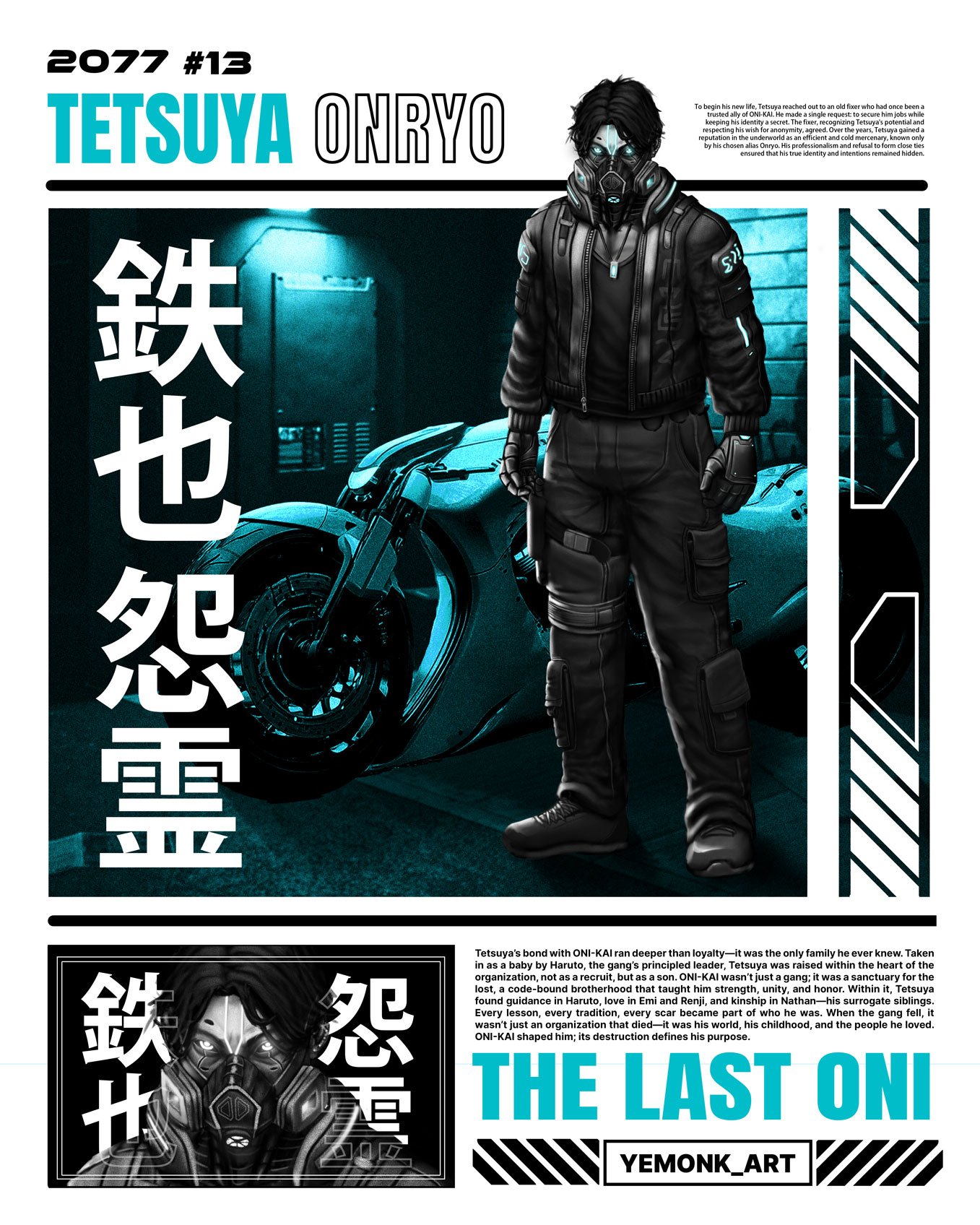 This piece portrays Tetsuya “Onryō” (鉄也), the last surviving member of the ONI-KAI gang. Forged by a strict code of honor and shattered by betrayal, he now operates as a mercenary in the shadows, driven by revenge and haunted by his past.